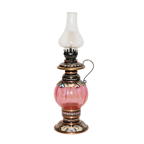 - Pembe renkli, sarmal tasarımlı cam bir gövdeye ve cam bir bacaya sahiptir