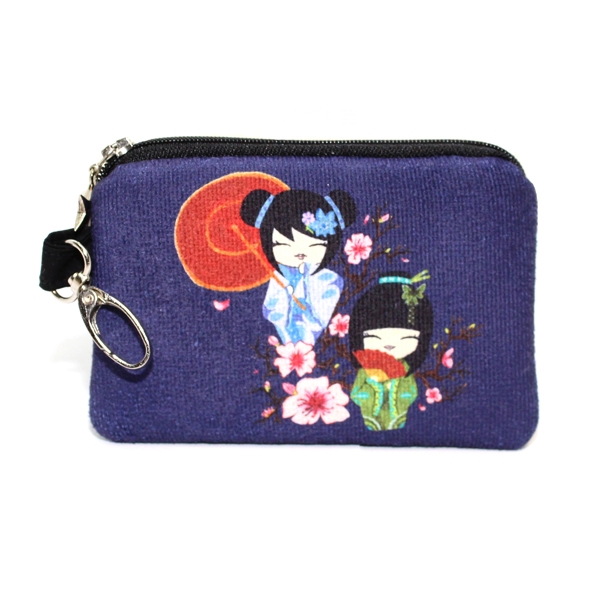 FR1034 Japon Bebekler Baskılı Nubuk Cüzdan