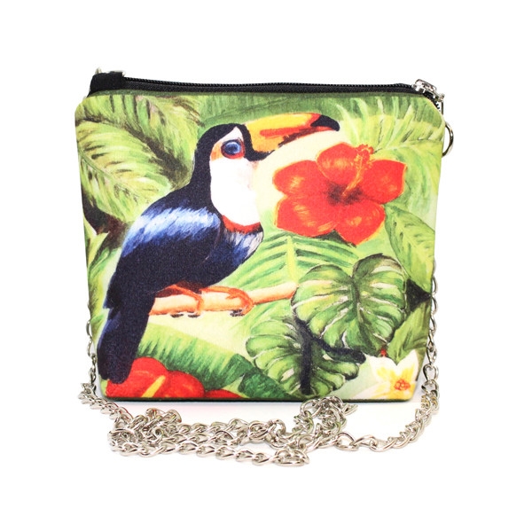 FR0419 Tukan Baskılı Kare Zincirli Çanta