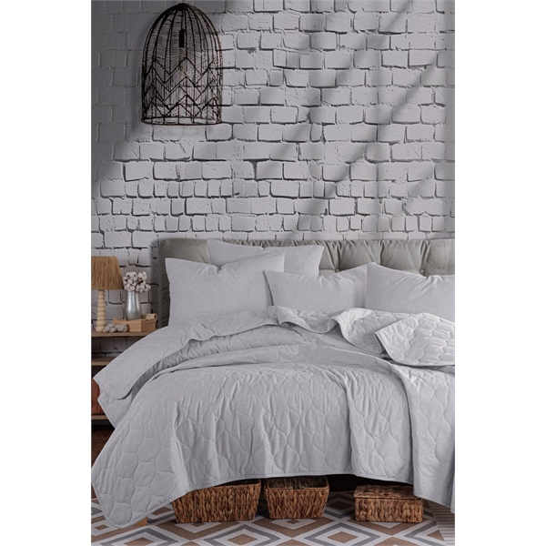 Kapitone Solid Gri Çift Kişilik Yatak Örtüsü Seti