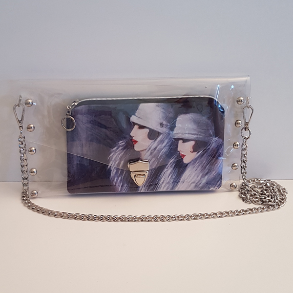 | - Şeffaf Çantalı Baskılı Nubuk Clutch |