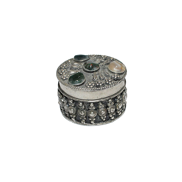 | - Doğal taşlarla süslenmiş bir alpaka takı kutusudur |