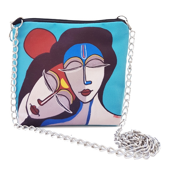 FR0418 Buda Kızlar Baskılı Mavi Kare Zincirli Çanta