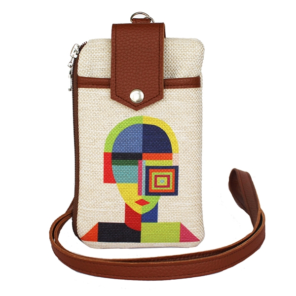 FR1828 Geometrik Kadın Baskılı, Deri Aparat Keten Telefon Çantası