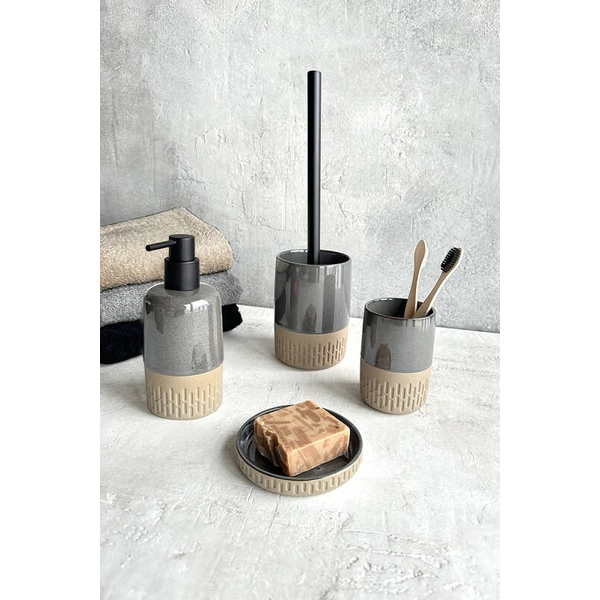 | - 4 Parçalı Set: Sabunluk, diş fırçalık, sıvı sabunluk ve tuvalet fırçası ile tam bir düzen sağlar. |