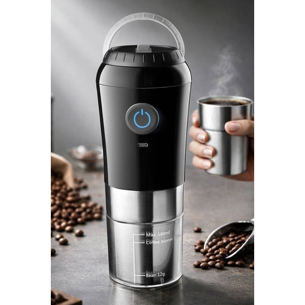 | - Portatif Paslanmaz Çelik Kahve Makinası Şarjlı - Siyah |