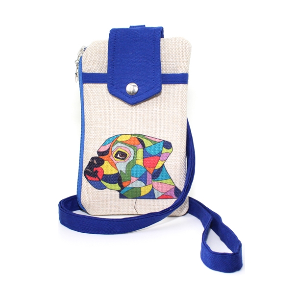 FR1823 Renkli Köpek Baskılı, Mavi Aparat, Keten Telefon Çantası