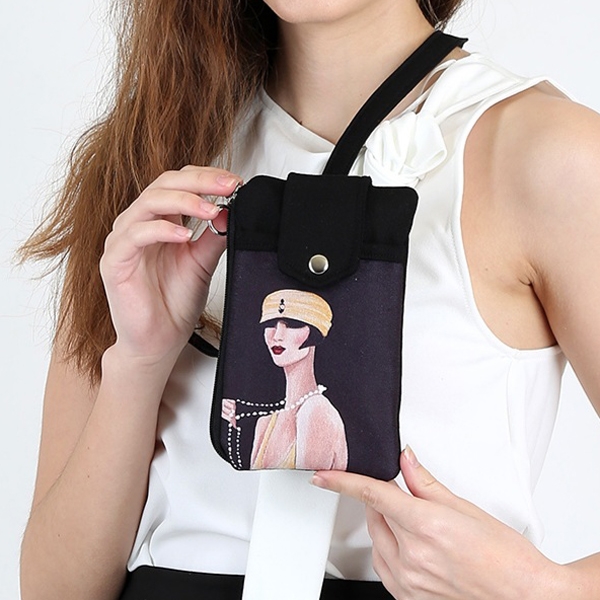 FR1036 İncili Kız Baskılı Nubuk Telefon Kılıf / Cüzdan