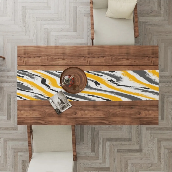 Modern Temalı Dijital Baskı Sarı Gri Desenle Runner 45 x 140 Masa Örtüsü