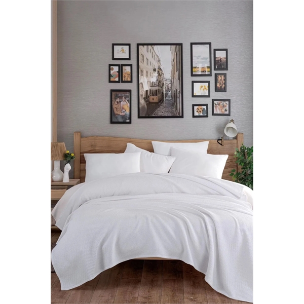 Ecotel Çift Kişilik Beyaz Pike Örtü