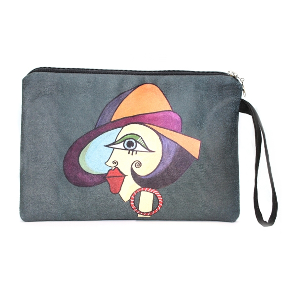 FR0643 Halka Küpeli Kız Baskılı Nubuk Clutch