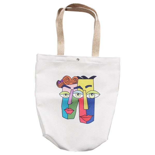FR018 Renkli Aile Baskılı Keten Plaj Çantası