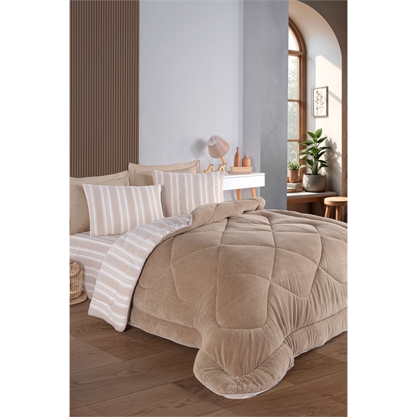 | - Uyku Seti : 4 Parçadan Oluşmaktadır ; Welsoft Yorgan : 195x215cm (1 Ad); Çarşaf (Lastiksiz) : 220x240cm (1Ad) ; Yastık KIlıfı: 50x70cm(2Ad) ; Yorgan Dış Kılıf : Welsoft Kumaş ; Çizgili Kumaş : %65 Pamuklu Kumaş %35 Pes ; Yorgan İçi: Silikonize Boncuk Elyaf ; Etrafındaki Biyesi ve Yuvarlak Köşeleri; Özenle İşlenmiş Yorgandır ; Ön Yüzey Welsoft Kumaş Sıcacık Pofuduk Özel Bir Dokunuş Sağlamaktadır (Kıştarafıdır) ;Arka Yüzey : Çizgili Spor Pamuklu kumaştır (yaz Tarafıdır) ; Yumuşak Dolguludur ; Çift Taraflı Kullanılabilir;Yorgan Arkası ve Önü Farklı renk ve kumaştır ; Rahatlıkla Yıkama Yapılabilir;Bakteri Yapmaz;Günlük ve Çeyizlik Kullanım İçin İdeal Bir Üründür; Çamaşır Makinasında Kurutma Yapmayınız ; Set Ağırlık : 3,80Kg dir ; Set : 12Desi ; Yıkama En fazla 30 derece de yapılmalıdır ; Yerli Üretimdir; Denizli de Üretilmiştir; Sererek kurutulması tavsiye edilir; Ağartma yapılmamalıdır; Ütülenmesi tavsiye edilmez; Nevresim ya da yatak örtüsü kullanımına gerek kalmaz; İç yüzeyinde bulunan nefes alan kumaşı terlemeyi önler, ayrıca yorgan işlevi gören yapısı ihtiyacınız olduğunda sizi sıcak tutar; Ağartma yapılmamalıdır. |