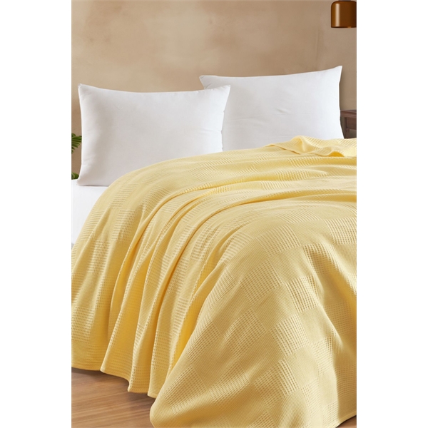 Karo Desenli 160x230 cm Sarı Tek Kişilik Pike Örtü