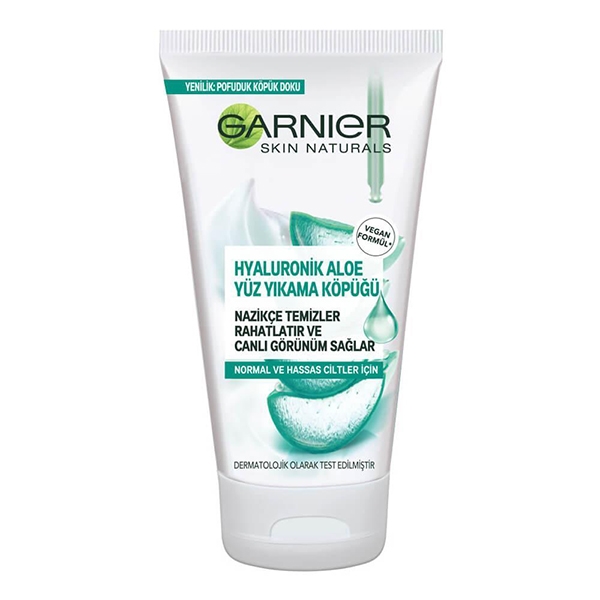 | - Yeni Garnier Hyaluronik Aloe Yüz Yıkama Köpüğü özel pofuduk köpük dokusu ile cildini etkili şekilde, cildinin daha pürüzsüz ve canlı görünmesini. |