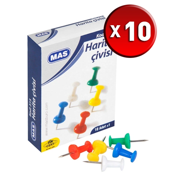 | - Ortalama iki cm boyutunda imal edilen Mas 315 harita çivileri, özel karton kutusunda saklanır. Ev, ofis ya da okullarda sıklıkla tercih edilen bu ürün, geniş bir kullanım alanına sahiptir. Çalışma alanınıza düzen getirir. |