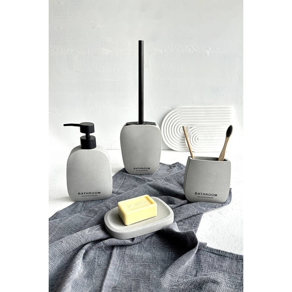 | - 4 Parçalı Set: Sabunluk, diş fırçalık, sıvı sabunluk ve tuvalet fırçası ile tam bir düzen sağlar. |