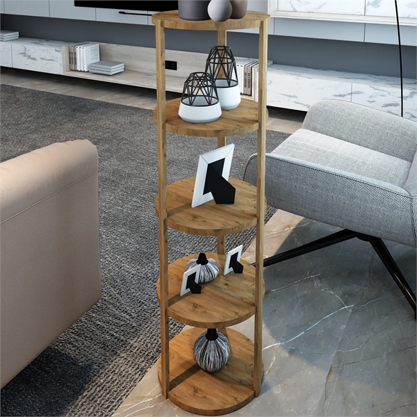 | - Jest Dekor Konsept Miray 5 Raflı Yuvarlak Çok Amaçlı Ahşap Sehpa, hem fonksiyonel hem de estetik tasarımıyla evin her köşesinde kullanabileceğiniz çok yönlü bir üründür. Yüksekliği 109 cm, genişliği 32,5 cm olan bu sehpa, zarif yuvarlak rafları ve 25 cm aralıkları sayesinde çeşitli dekoratif eşyaları sergilemek için veya işlevsel kullanım seçenekleri sunuyor. E1 Sertifikalı doğal ahşaptan üretilen bu sehpamız, sağlığa zararlı hiçbir madde içermez ve çevre dostudur. Dayanıklı yapısı ve estetik tasarımıyla salon, yatak odası, banyo veya balkon gibi birçok alanda rahatlıkla kullanılabilir. İsterseniz dekoratif çiçeklik, isterseniz kitaplık, isterseniz yan sehpa olarak değerlendirebilirsiniz.Ev dekorasyonunda doğallığı ve şıklığı bir araya getiren bu sehpaya şimdi sahip olun, yaşam alanınıza sıcak bir dokunuş katın! |