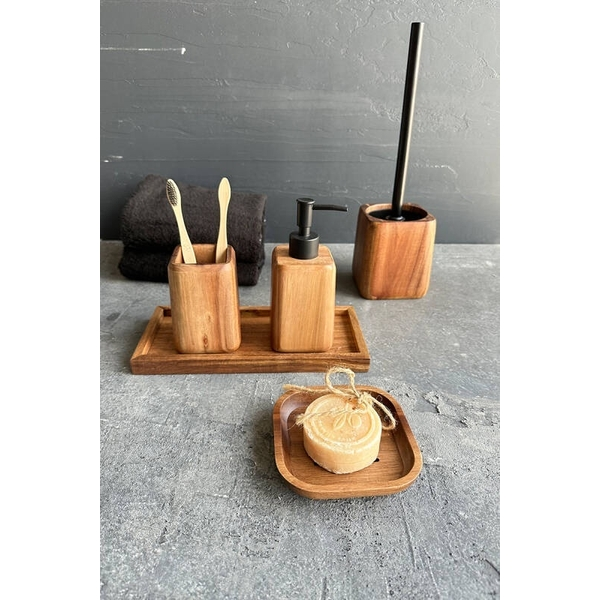 | - 4 Parçalı Set: Sabunluk, diş fırçalık, sıvı sabunluk ve tuvalet fırçası ile tam bir düzen sağlar. |