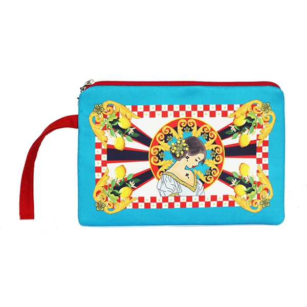 FR0653 Sicilya Esintisi Baskılı Nubuk Clutch