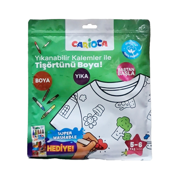 | - Carioca Boyanabilir Tişört – Keçeli Kalem Hediyeli, çocukların kendi tişörtlerini istedikleri gibi renklendirmelerine olanak tanır. |