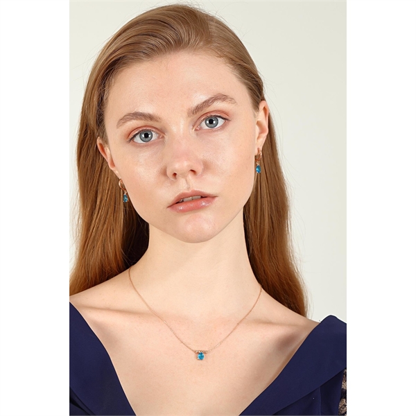 925 Ayar ALK7035 Damla Mavi Kadın Zirkon Set