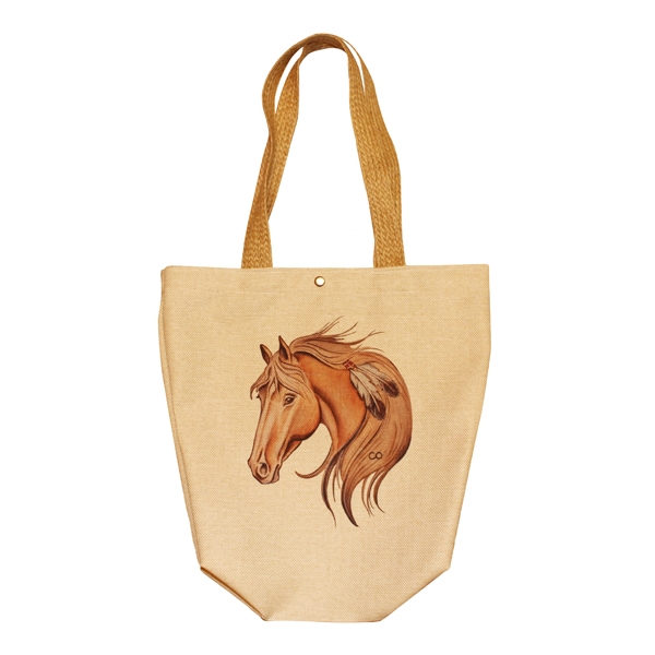 FR014 At Baskılı Keten Plaj Çantası