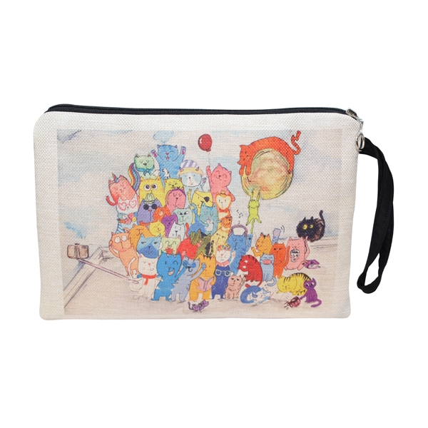 FR0637 Selfie Çeken Kediler Baskılı Keten Tablet Kılıfı