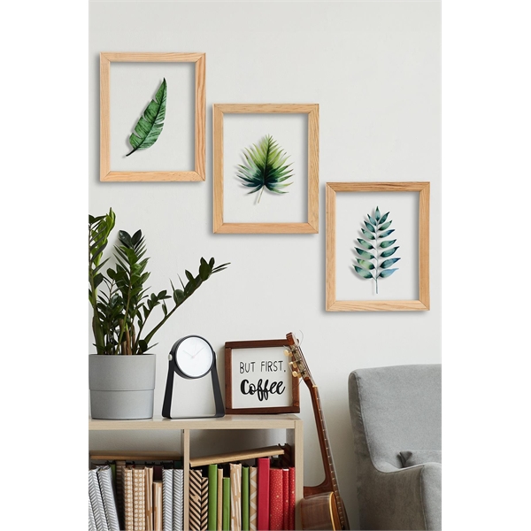 MYK9916 Regina Yaprak 3 Parça Ahşap Çerçeveli Tablo Seti