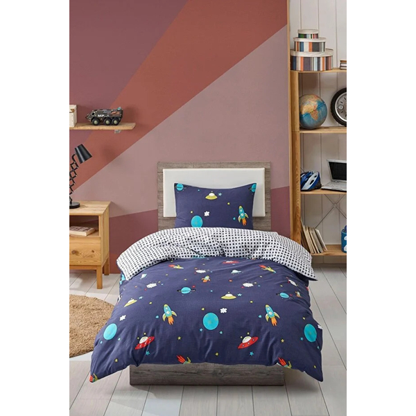 Uzay Mavi Tek Kişilik Nevresim Seti
