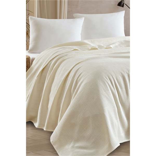Karo Desenli 160x230 cm Krem Tek Kişilik Pike Örtü