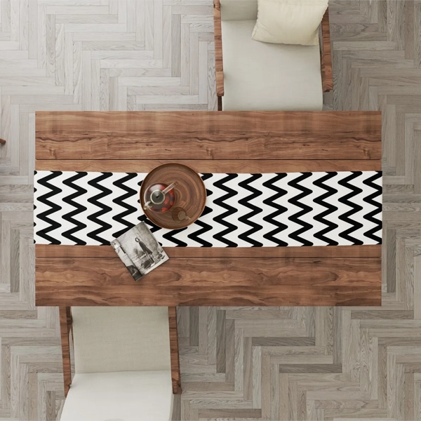 Zigzag Temalı Dijital Baskı Runner 60 x 140 Masa Örtüsü