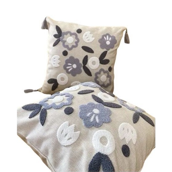Punch Nakışlı Dekoratif İçi Dolu Bohem Gri 2'li Kırlent