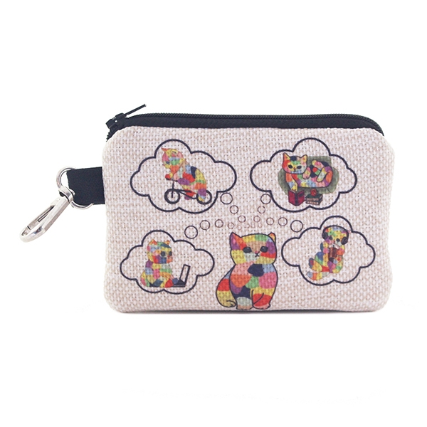 FR1054 Kedinin Rüyası Baskılı Keten Cüzdan