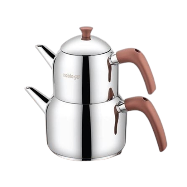 | - Hepimizin bildiği çaydanlıklar iki parçadan oluşur. Genellikle çelik ürünlerden yapılır ve kulpları bakırdır. |