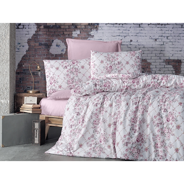 Rose Garden Pembe Beyaz Çift Kişilik Nevresim Takımı