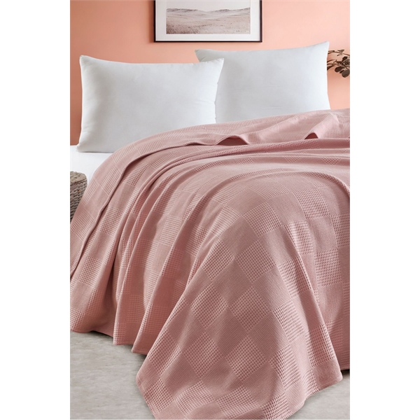 Karo Desenli 160x230 cm Pudra Tek Kişilik Pike Örtü
