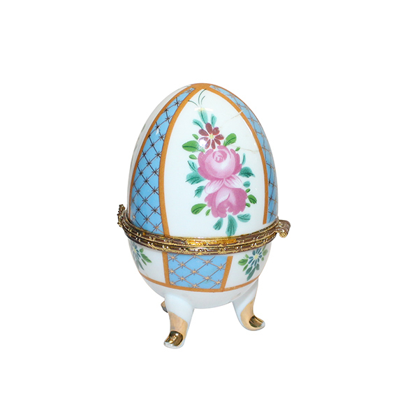 | - Fransız Limoges porseleninden üretilmiş, üzerinde narin el boyaması pembe gül motifleri ve mavi kafes desenleri bulunmaktadır. |