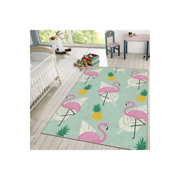 HMIGD-16 Dijital Baskı Flamingo Yeşil 80x150 Çocuk Odası Halısı