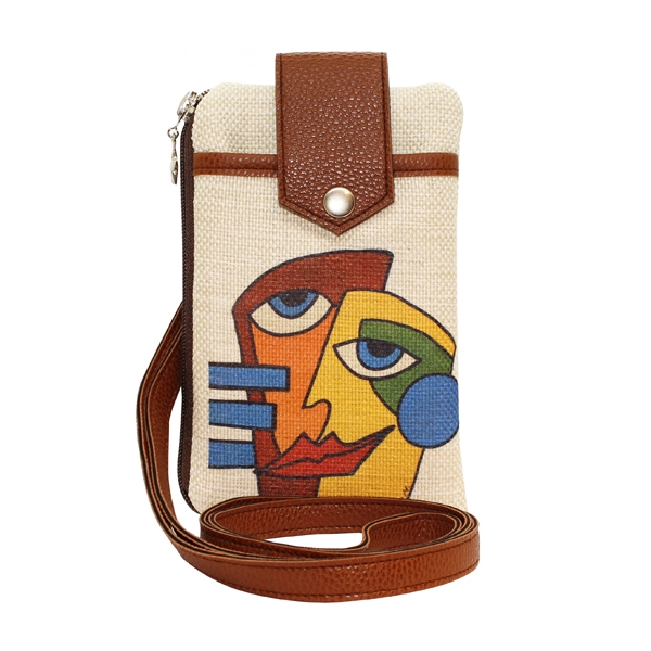 - Baskılı Keten Cep Telefon Çantası
