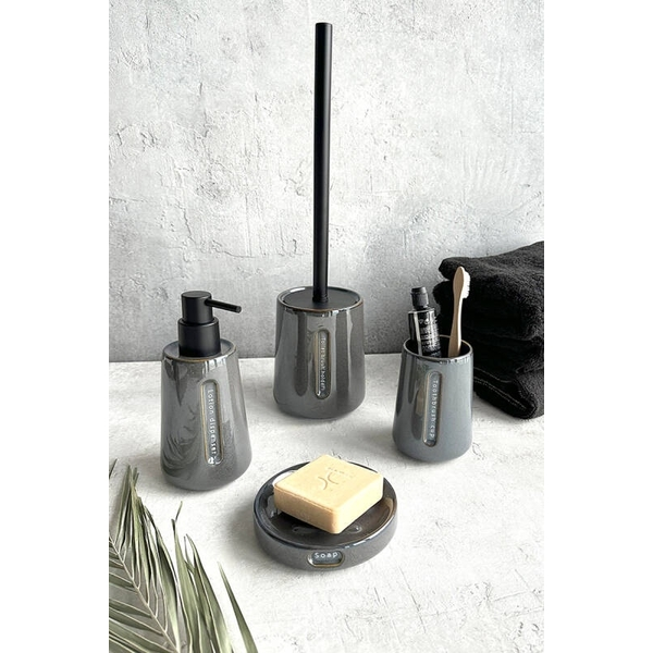 - 4 Parçalı Set: Sabunluk, diş fırçalık, sıvı sabunluk ve tuvalet fırçası ile tam bir düzen sağlar.