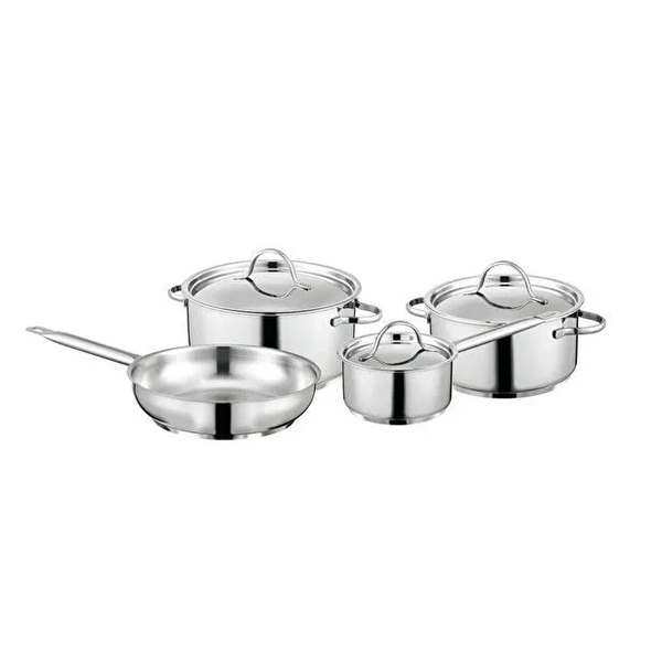 | - İçerik: 1× Kapaklı tencere – 16 cm (1,6 L), 1× Kapaklı güveç – 20 cm (3,1 L), 1× Kapaklı tencere – 24 cm (5,4 L), 1× Kızartma tavası – 24 cm (2,3 L) |