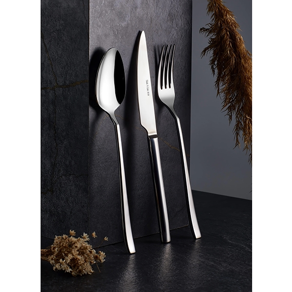 | - 304 kalite, 18/10 CR.Nİ paslanmaz çelikten üretilmiş olan bu set, her türlü sofrada zarif bir görünüm sağlar. |