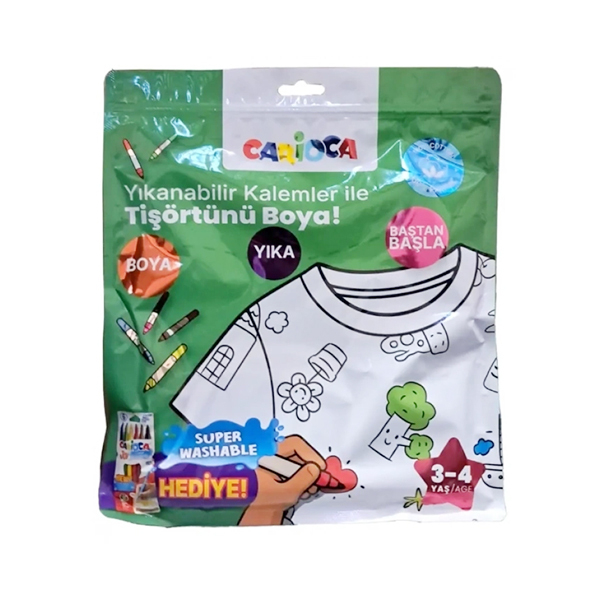 | - Carioca Boyanabilir Tişört – Keçeli Kalem Hediyeli, çocukların kendi tişörtlerini istedikleri gibi renklendirmelerine olanak tanır. |