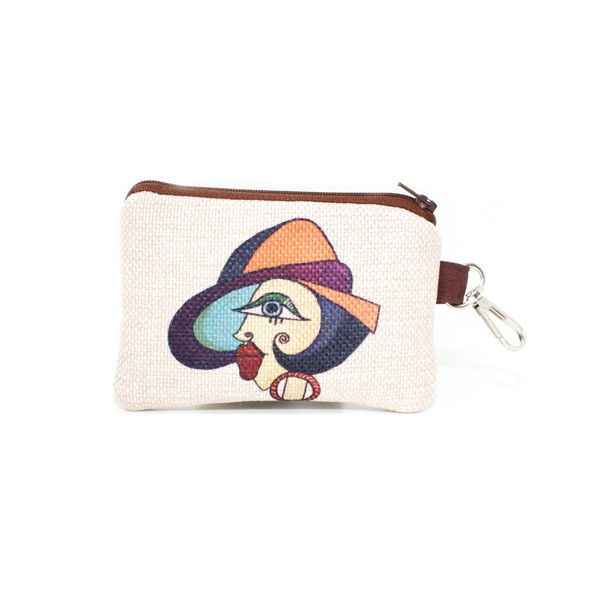 FR1037 Halka Küpeli Kız Baskılı Keten Cüzdan
