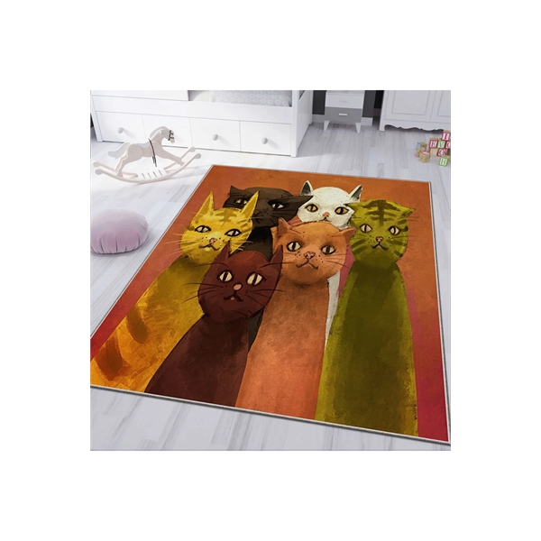 HMIGD-29 Dijital Baskı Cats Renkli 80x150 Çocuk Odası Halısı