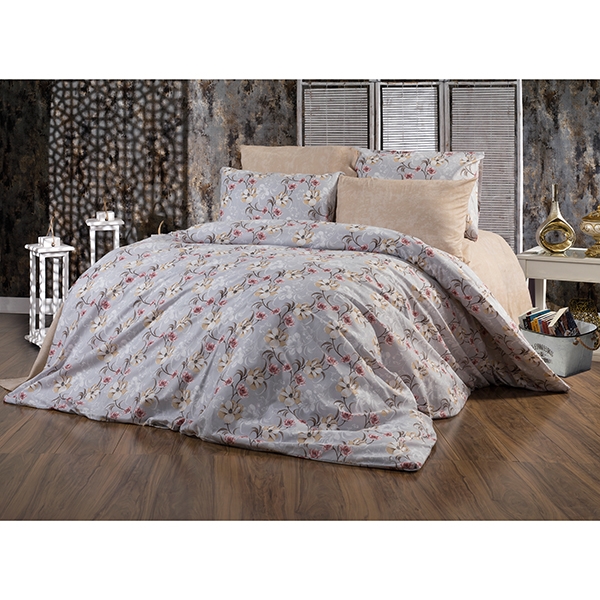 Rose Garden Gri Kahve Çift Kişilik Nevresim Takımı