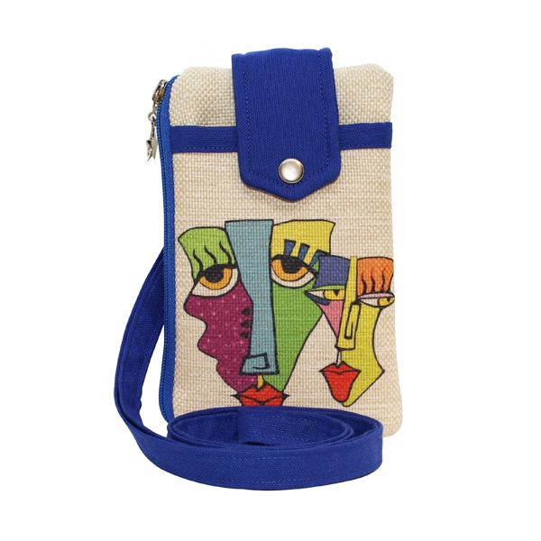 - Baskılı Keten Cep Telefon Çantası