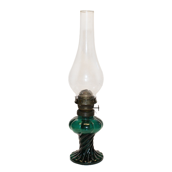 - Yeşil renkli, sarmal tasarımlı cam bir gövdeye ve cam bir bacaya sahiptir