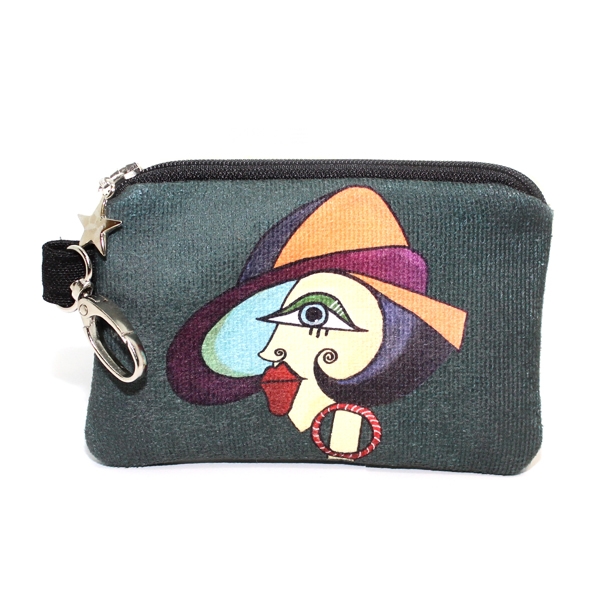 FR1033 Halka Küpeli Kız Baskılı Nubuk Cüzdan